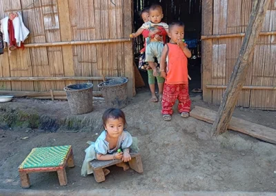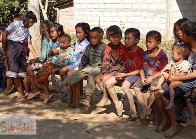 Situé sur les rives du Mékong, à environ 2 heures de navigation de la ville de Pakbeng, ce village de l’ethnie Khmu accueille une cinquantaine d’enfants vivant dans une grande précarité. L’école, constituée de terre battue et de mobilier rudimentaire, reste le seul lien vers l’éducation. Un instituteur y enseigne du lundi au vendredi.