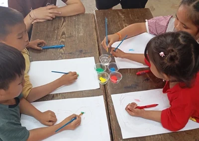 Pérennité : pour que l’art survive à notre passage, nous avons laissé un stock de matériel au directeur, en complément des fournitures scolaires (cahiers, stylos) achetées sur place.